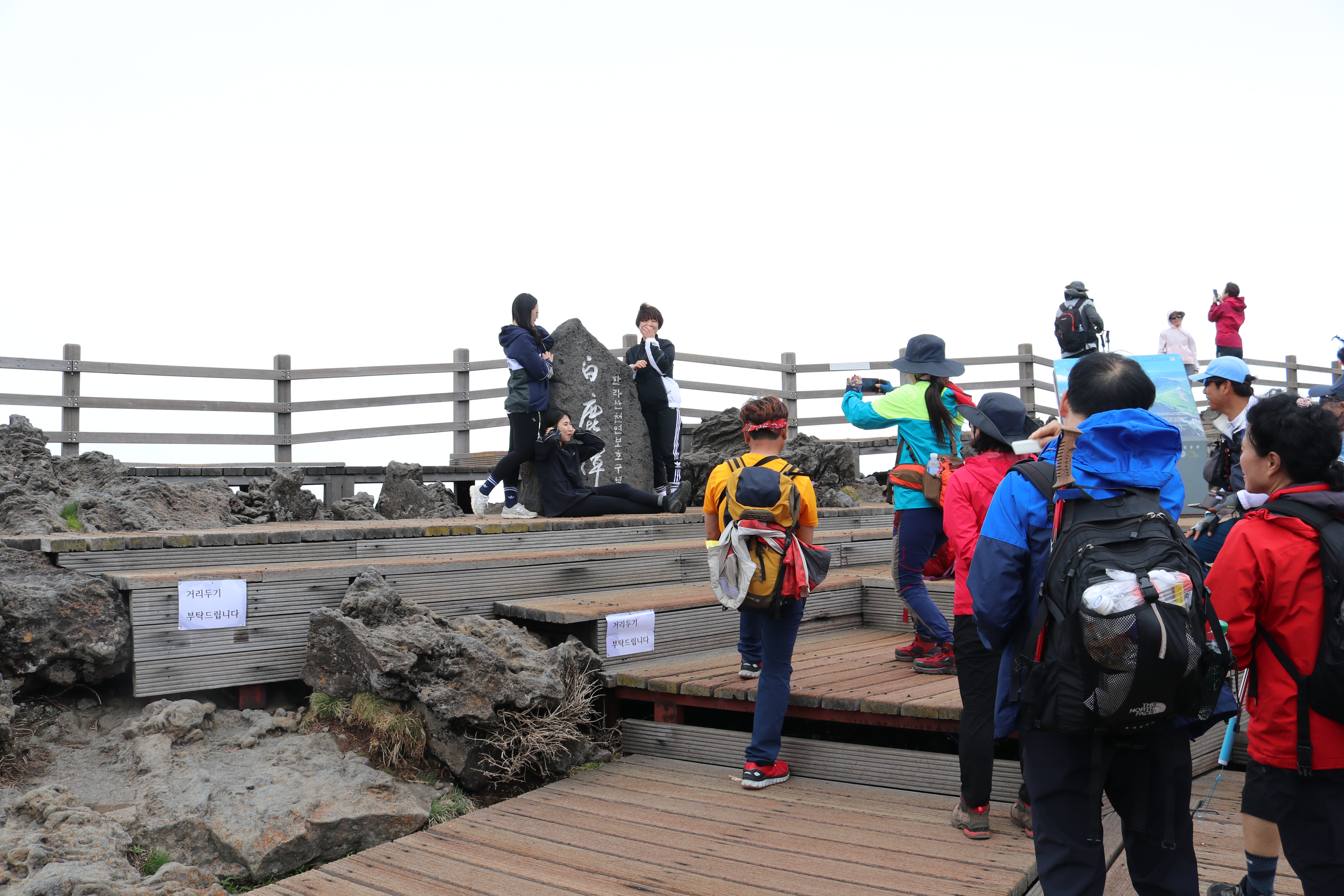 한라산 정상에 오르니 백록담 앞에서 인증샷을 남기려는 사람들로 인산인해를 이루었다. 대략 11시 20분 정도에 도착했었는데 12시가 넘어가니 줄이 순식간에 길어졌다.