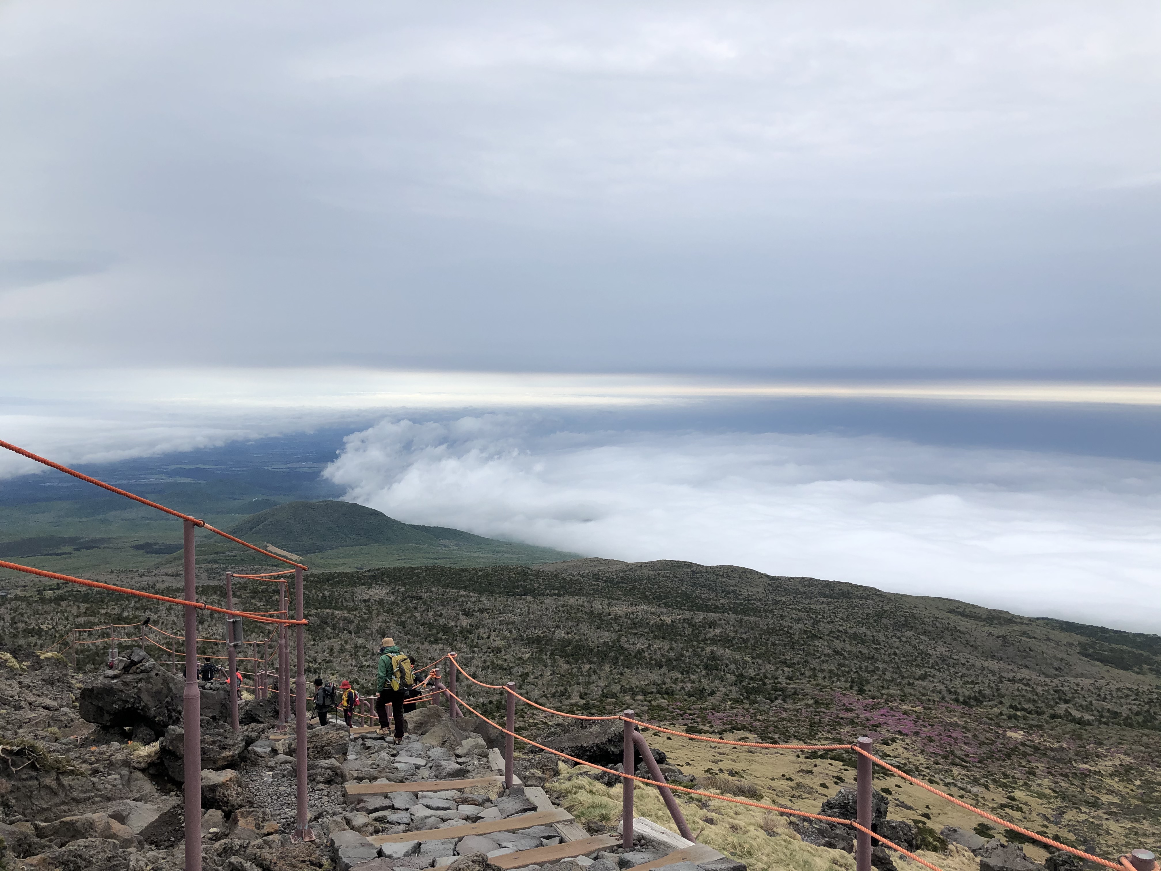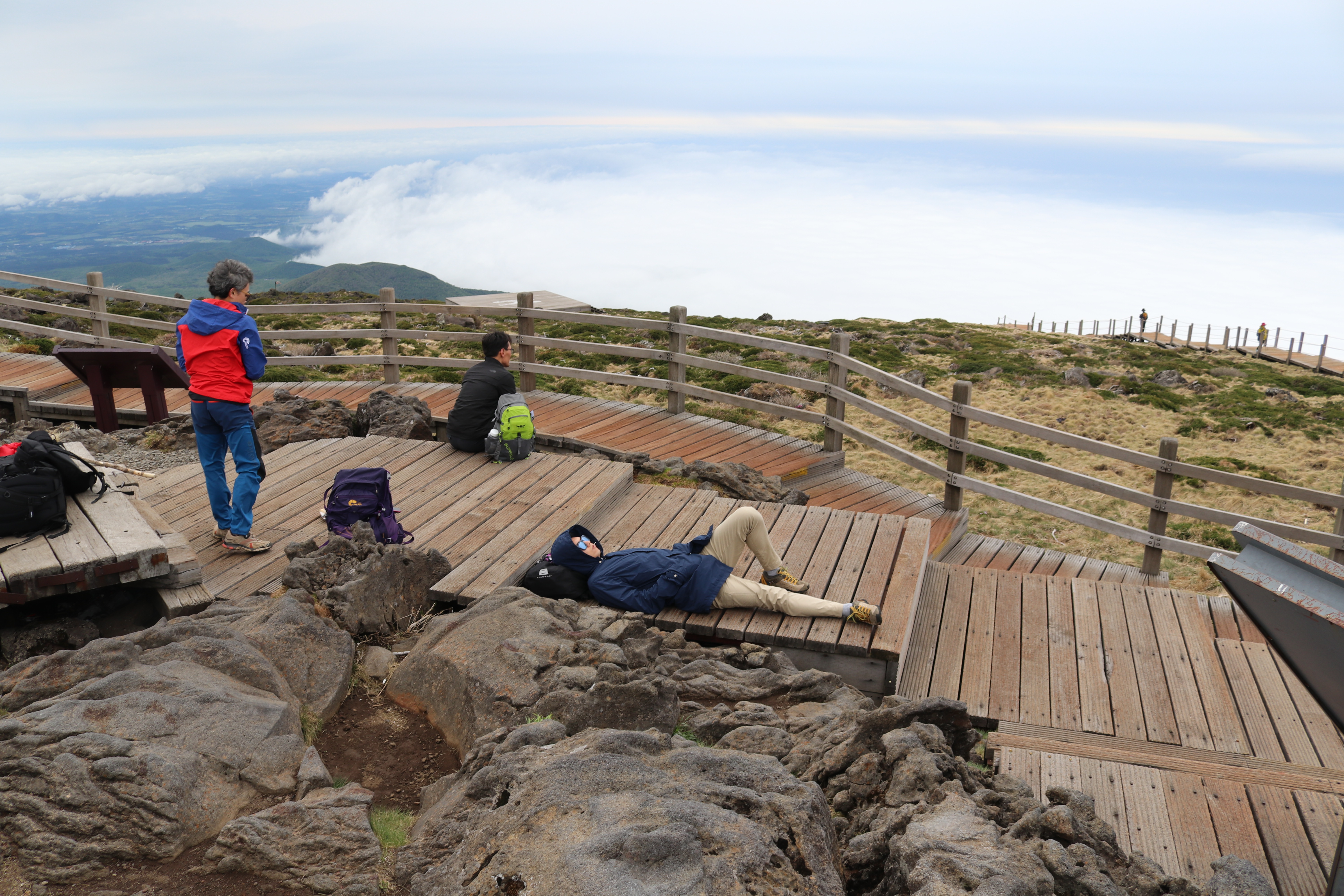 한라산 진달래밭대피소 이후부터는 이렇게 나무 계단을 오르게 되는데 뒤를 돌아보니 그야말로 장관이었다. 스위스 피르스트나 체르마트에서 눈앞에 구름이 떠다니는 모습을 볼 수 있었는데 그러한 풍경을 다시 한번 볼 수 있었다. 다리에 힘이 풀려 주저앉은 것은 비밀..ㅋㅋ