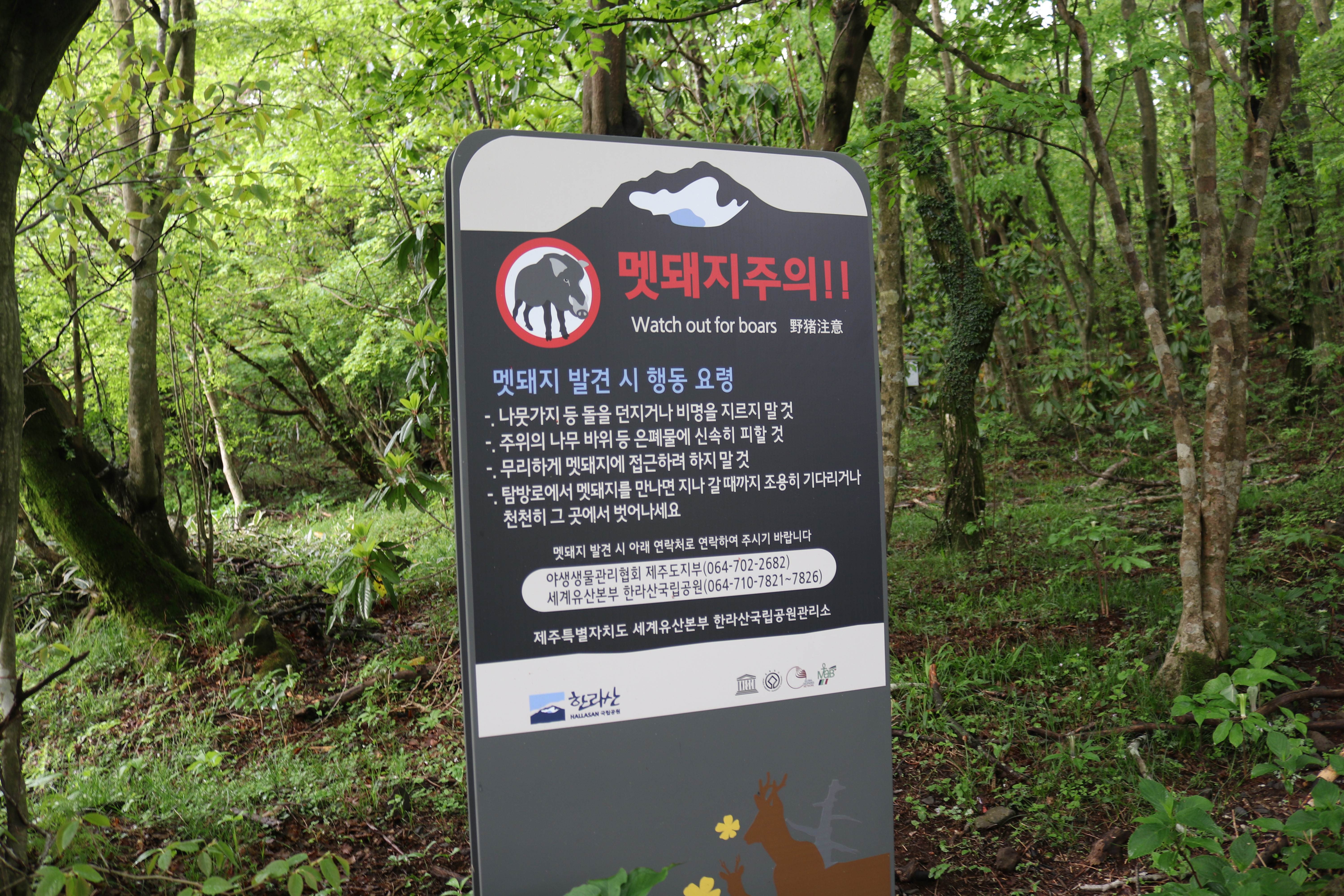 입구를 통과하게 되면 본격적인 한라산 등산이 시작된다. 오르기 전에 멧돼지를 주의하라는 안내 문구가 있어 긴장했는데 실제로 목격하기도 했다. 멧돼지도 말과 같이 소리에 민감하니 무섭다고 비명을 지르거나 돌을 던지는 행위를 하면 더욱 위험한 상황이 발생하게 되니 조심해야 한다.