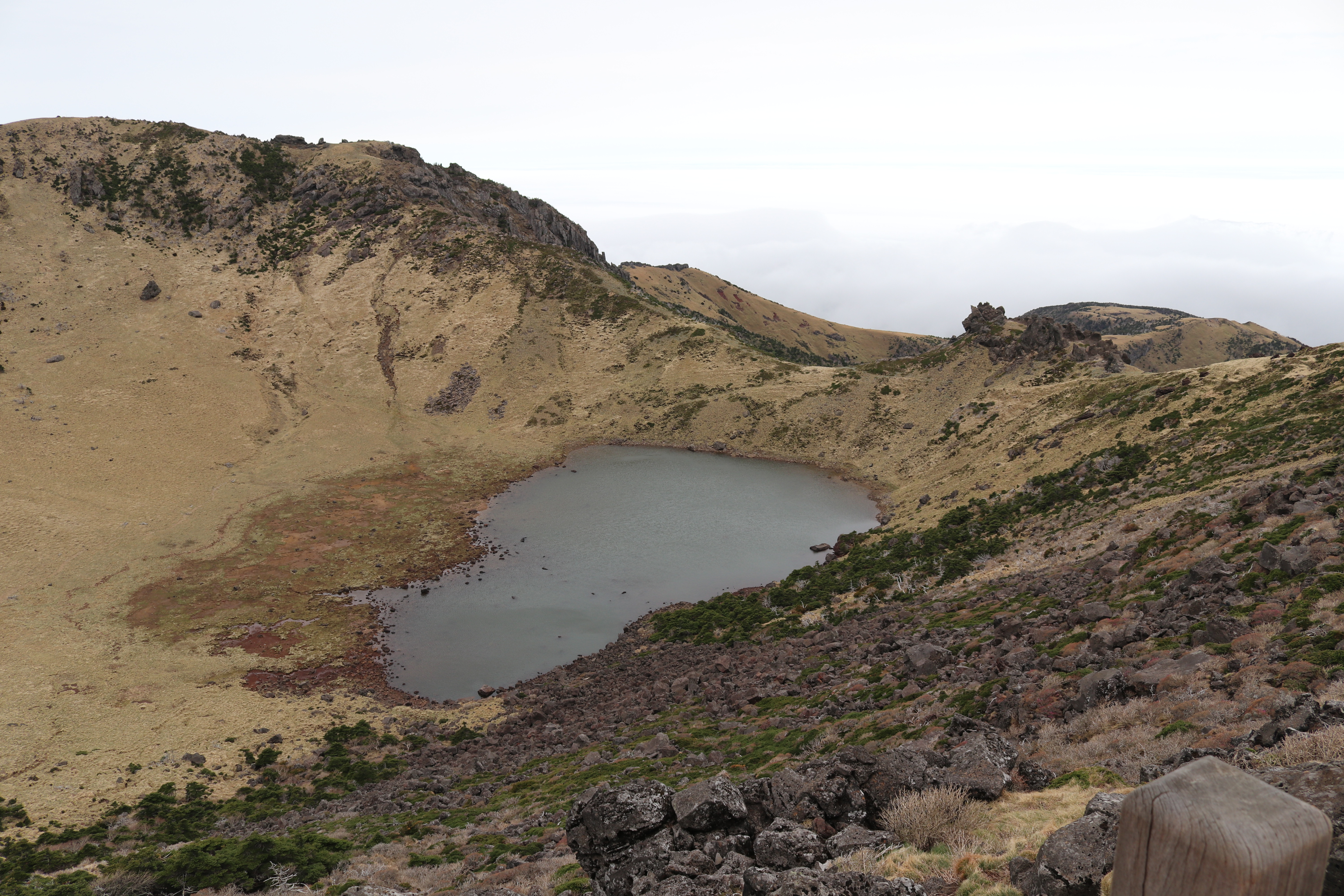 백록담은 내가 생각했던 것보다 물이 거의 없어서 빈촐한 모습이었다. 전날 비가 꽤 내려서 물이 차지 않았을까 싶었는데 아니었다.