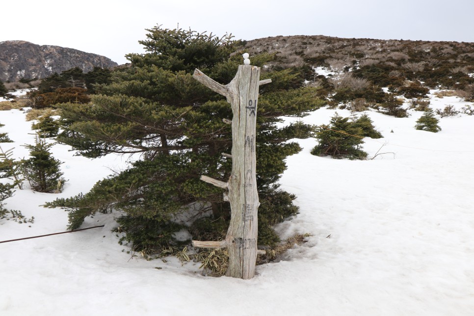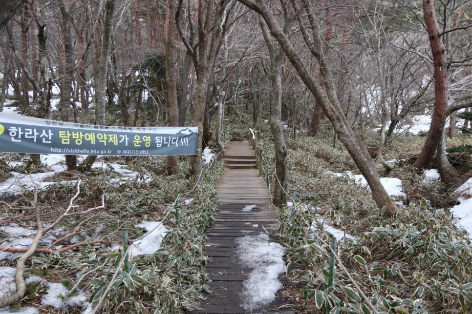 영실기암에 쌓인 설경을 기대하면서 올라왔으나 아쉽게도 눈이 많이 녹은 상태였다. 참고로 한라산에 오르기로 한 날에 폭설이 내리면 베스트인데, 눈이 내린 지 일주일 뒤는 보통 거의 녹는다고 봐도 무방하다.