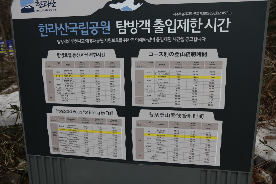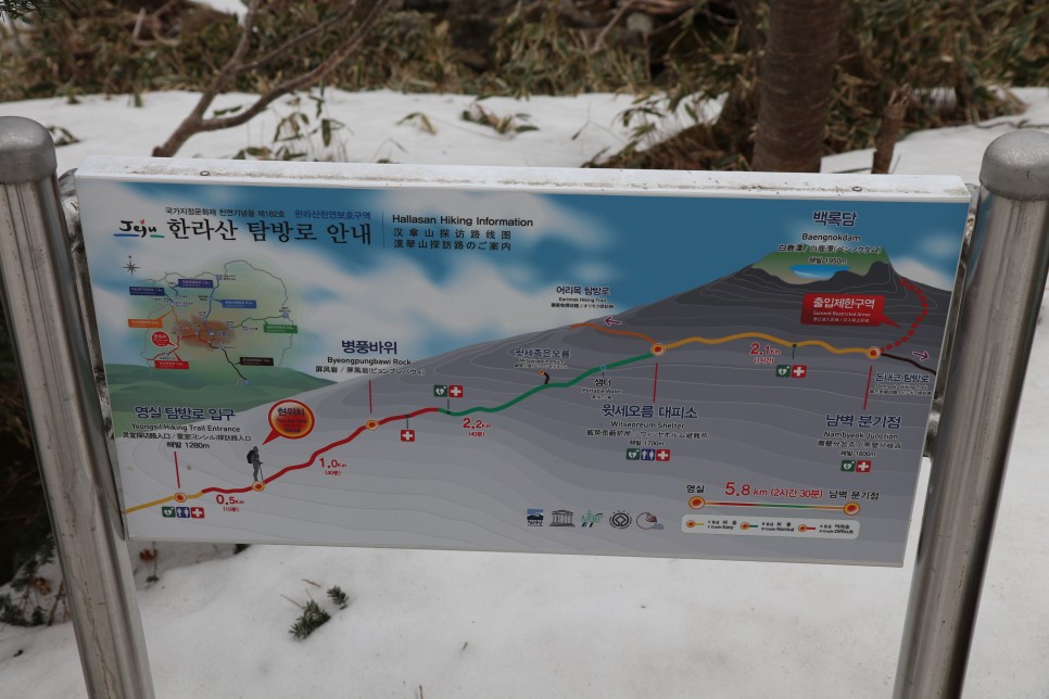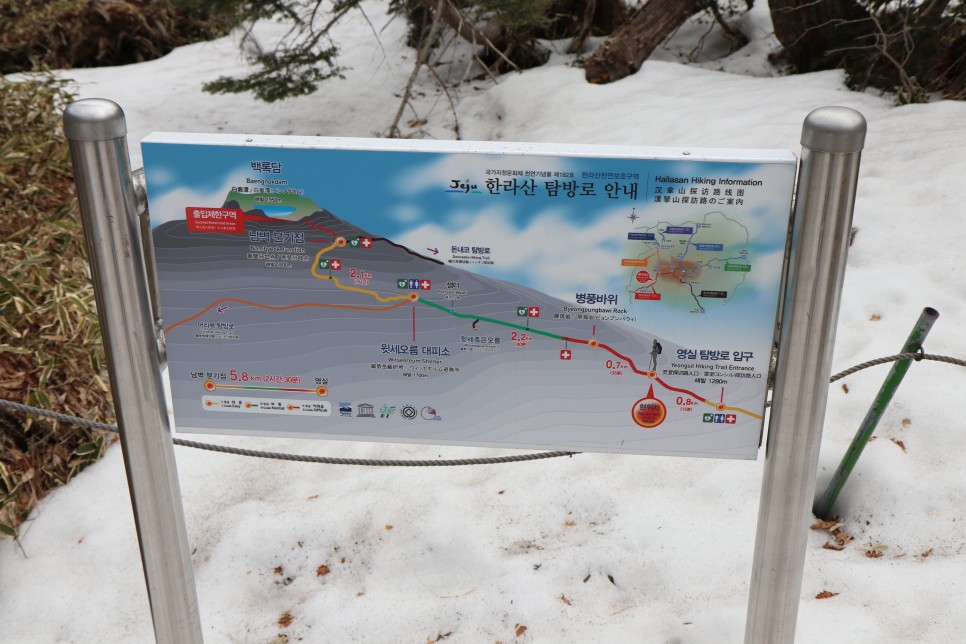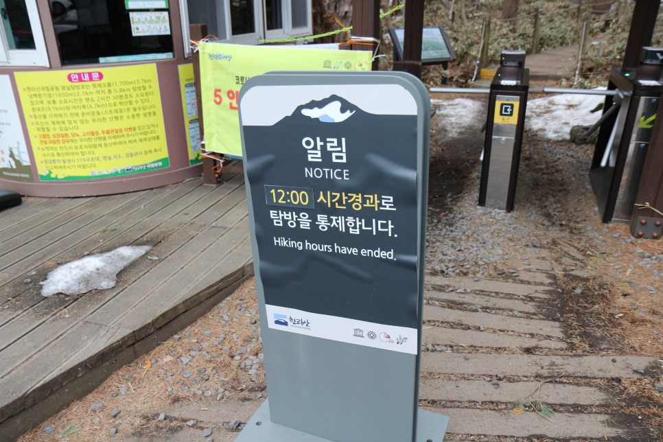 전세계에서 이곳을 찾는 관광객들이 많은지, 영어/중국어/일본어로 된 설명도 눈에 띄었다. 영실코스로 윗세오름까지 오르기 위해서는 이곳까지 12시 이전에 도착해야 한다.