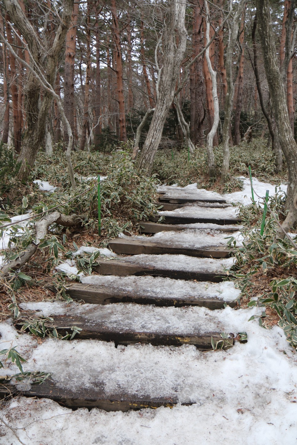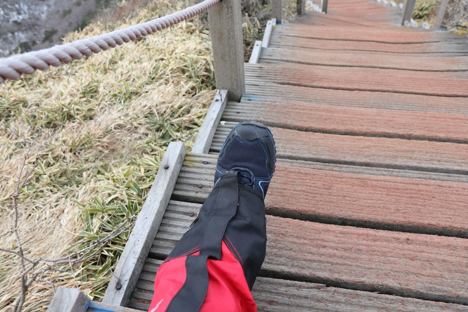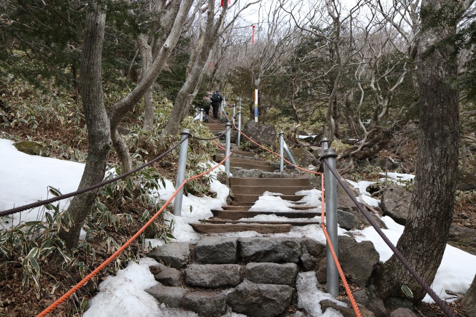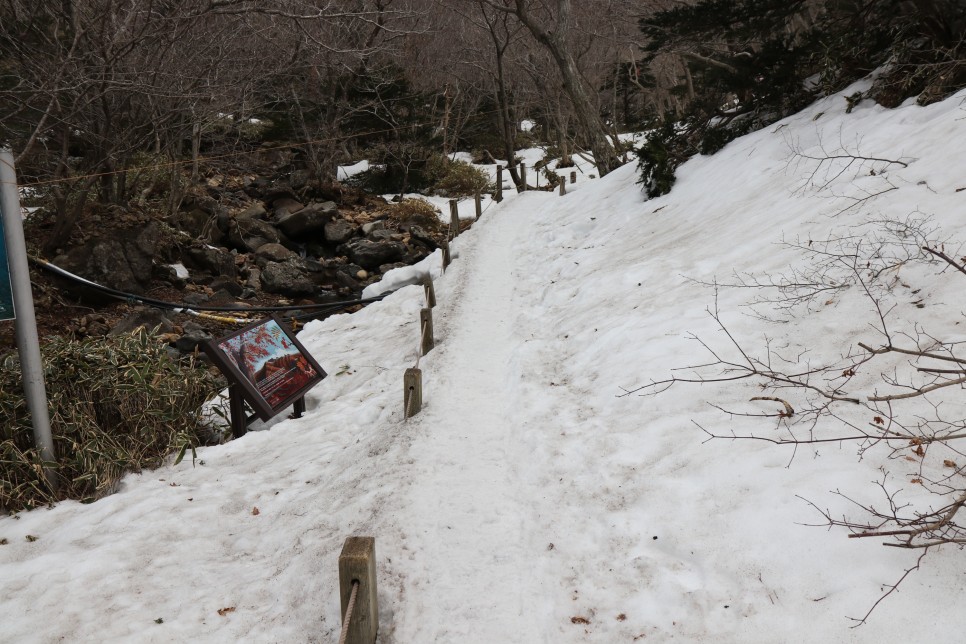중간즈음부터 이렇게 급경사가 펼쳐지므로 눈이 쌓였을 때 등산객들이 종종 썰매를 타고 내려오곤 하는 듯 하다.
