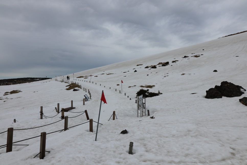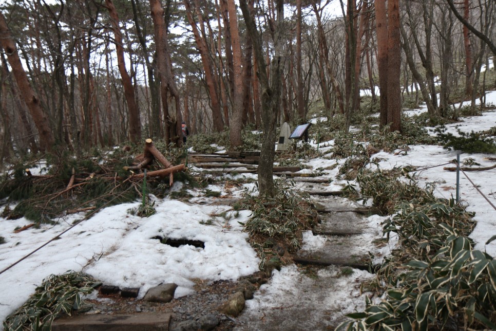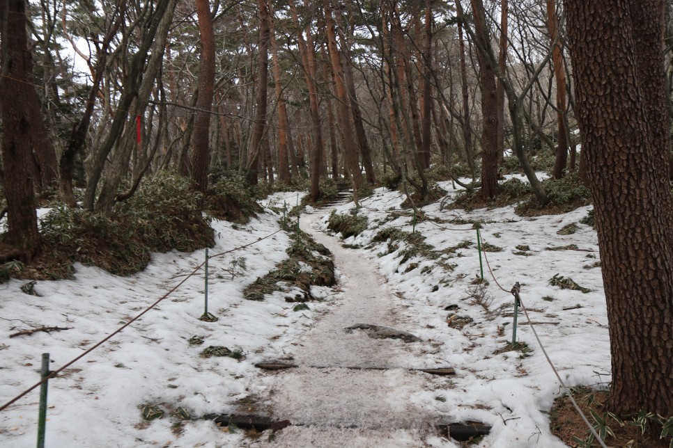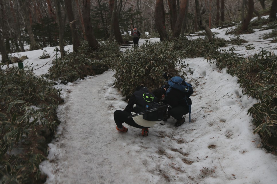해발이 점차 높아지다 보니 아직 눈이 녹지 않은 구간들도 마주할 수 있었다. 몇몇 등산객들은 눈이 쌓인 오르막에 올라가 점프샷 등을 남기기도 하였다.
