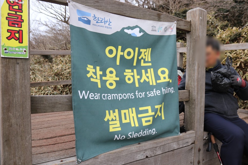 나와 마찬가지로 이곳에서부터 아이젠을 착용하는 등산객들을 심심찮게 볼 수 있었다. 눈이 쌓인 한라산에 오른다면 미리 아이젠을 착용하고 걸어 올라오는편이 좋을 듯 하다.