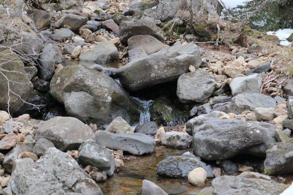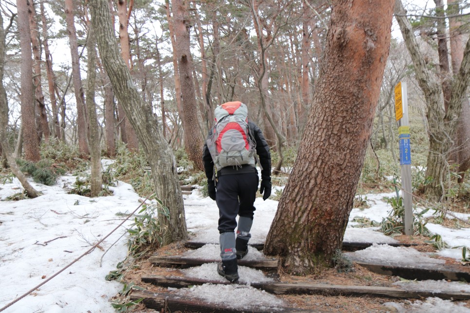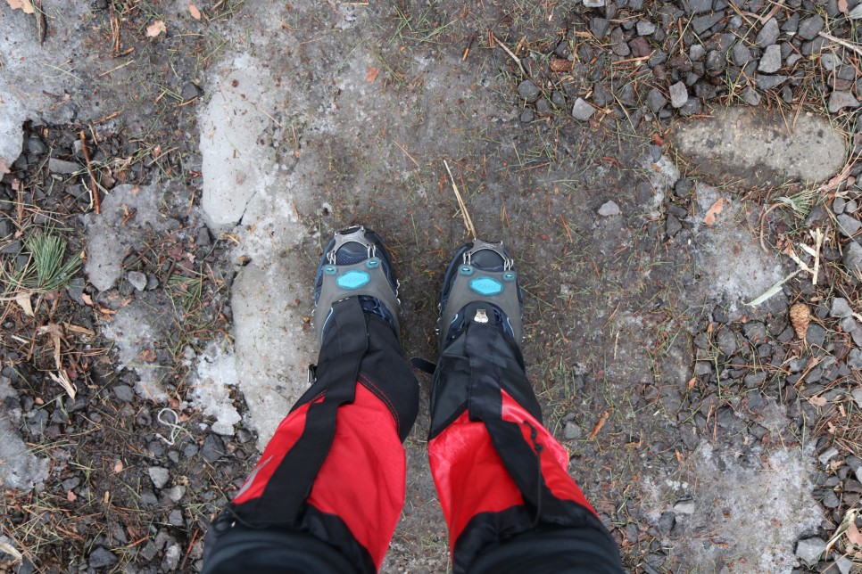 당시 3월 초였음에도 불구하고 아직 눈이 다 녹지 않은 상태였다. 그래서 중간에 스페츠와 아이젠을 꺼내 착용한 뒤 걷기로 했다.