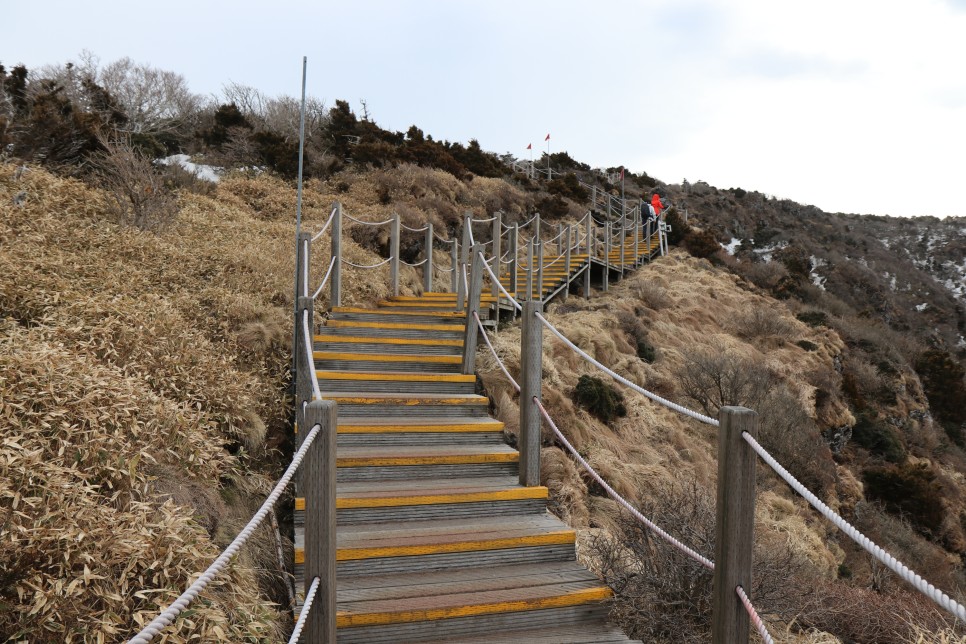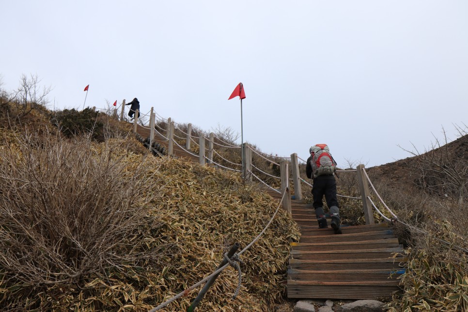 해발 1,500M 즈음부터 시작되는 나무데크 길이 마지막 고비이다. 위의 사진처럼 제주도에 혼자 여행와서 한라산에 등산하는 관광객들을 심심찮게 볼수 있기도 했다.