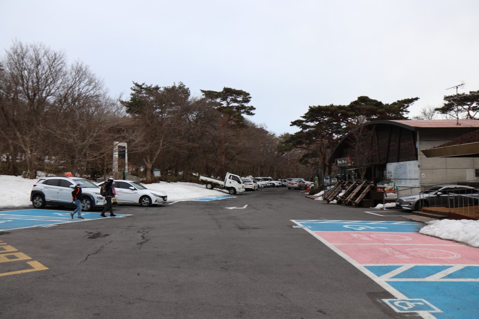 영실코스에는 주차장이 2개가 있는데 하나는 입구 바로 앞에 있어 접근성이 좋은 반면, 다른 하나는 아래쪽에 있어 이곳 입구까지만 해도 도보로 무려 40분 이상 소요되는 오르막 길임을 감안해야 한다.