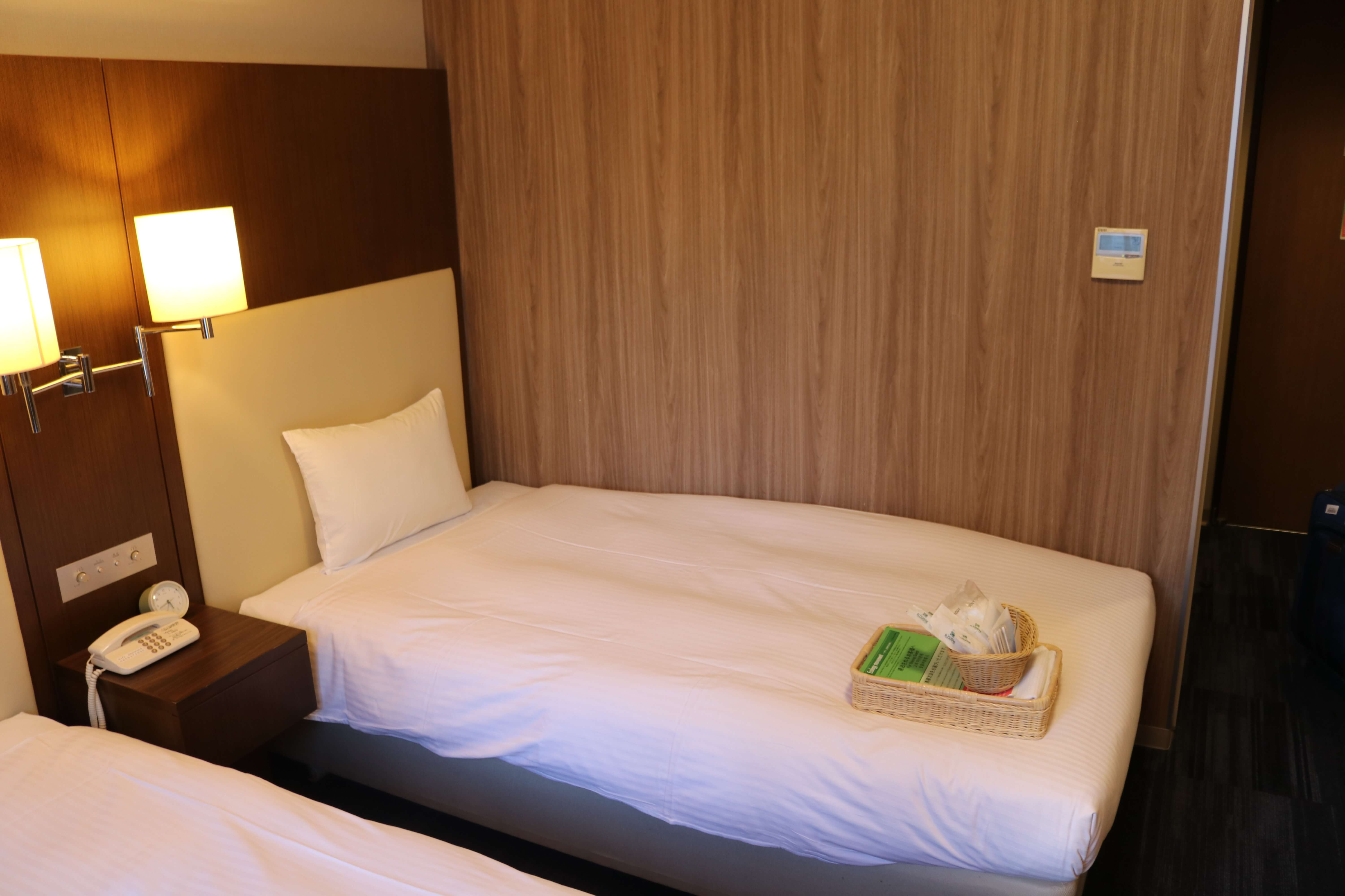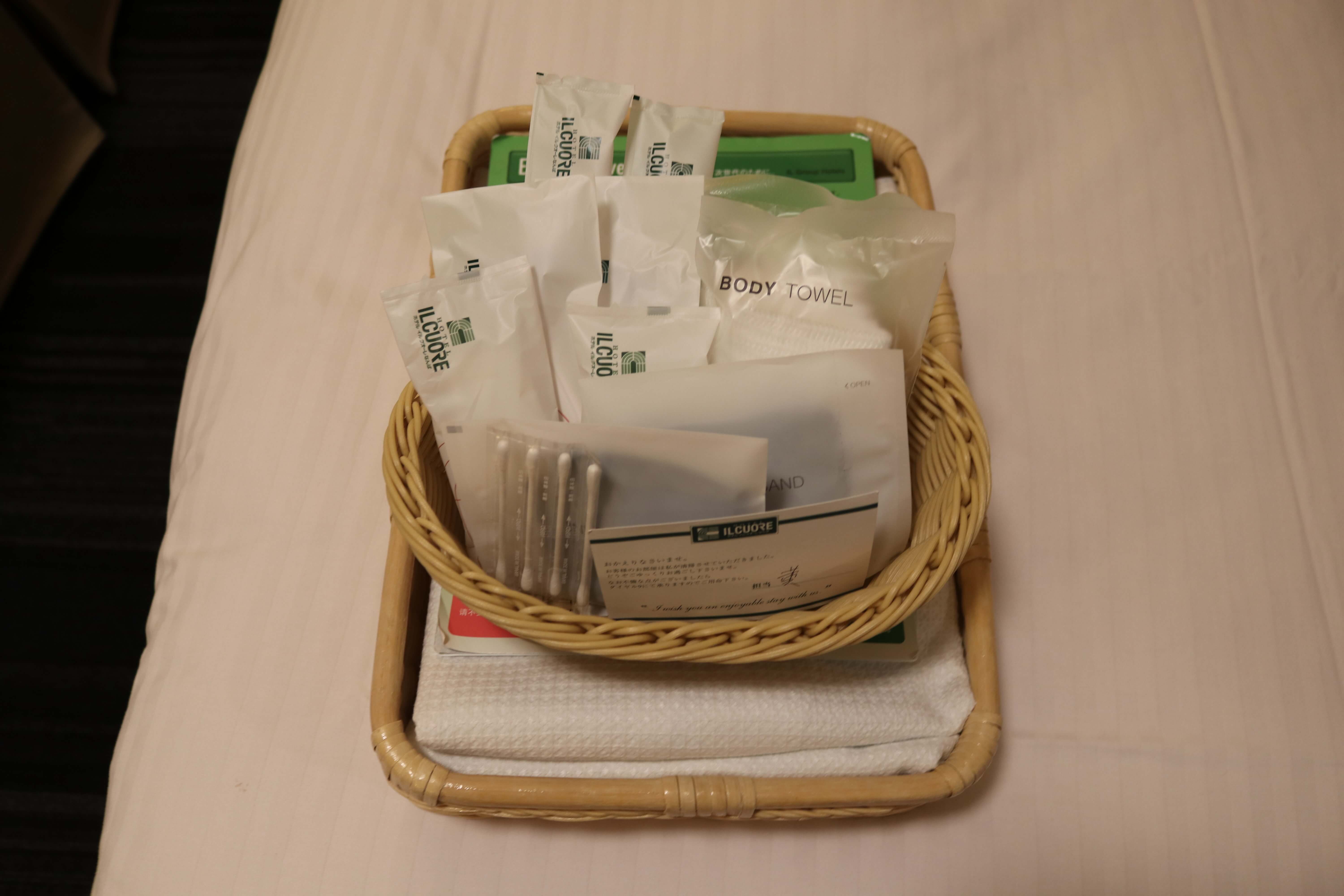 침대 위 바구니에는 일회용 칫솔, 치약, 바디타월, 면도기, 면봉 등이 준비되어 있었다. 일제라서 그런지 괜히 더 깔끔하게 느껴졌던 것 같다.