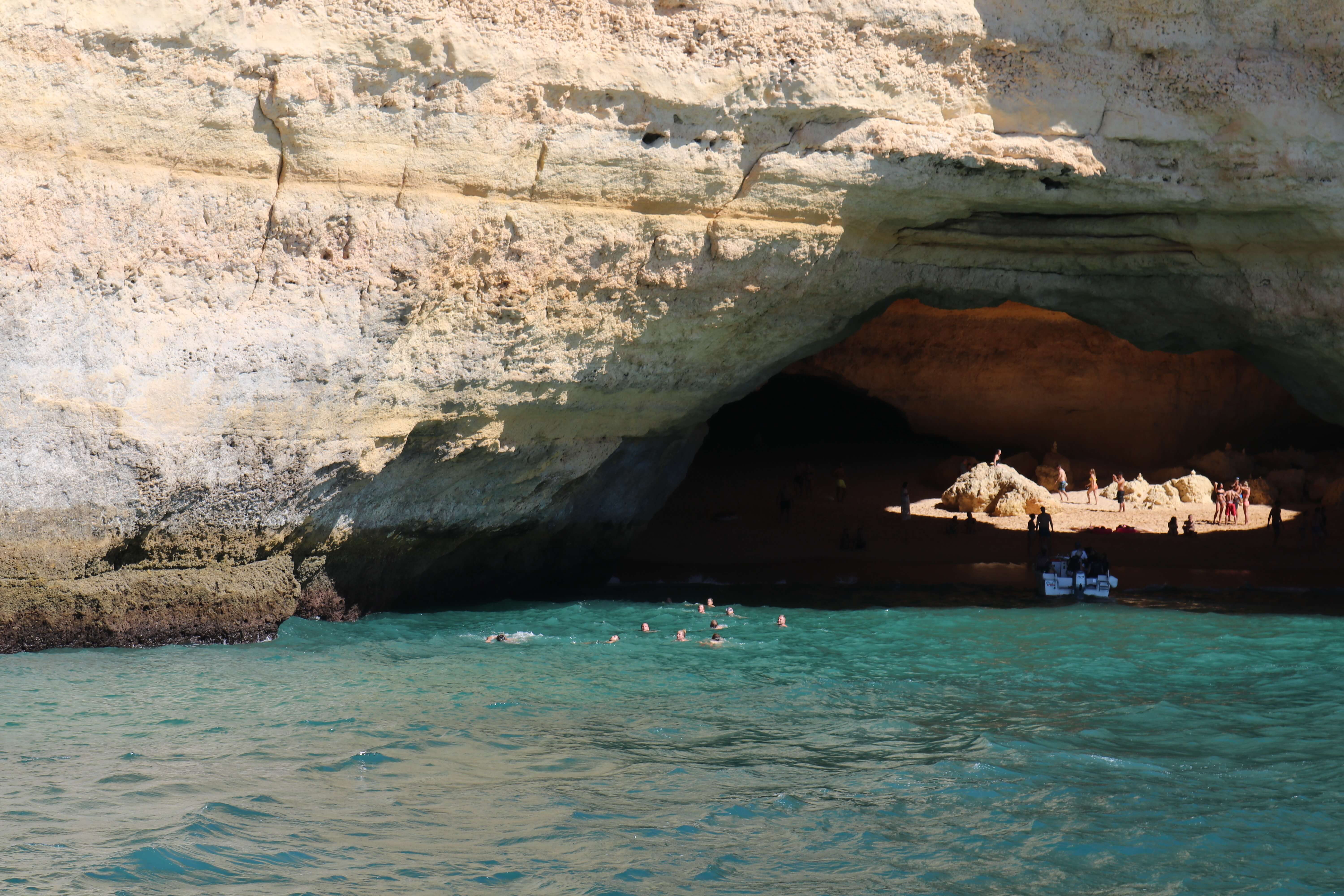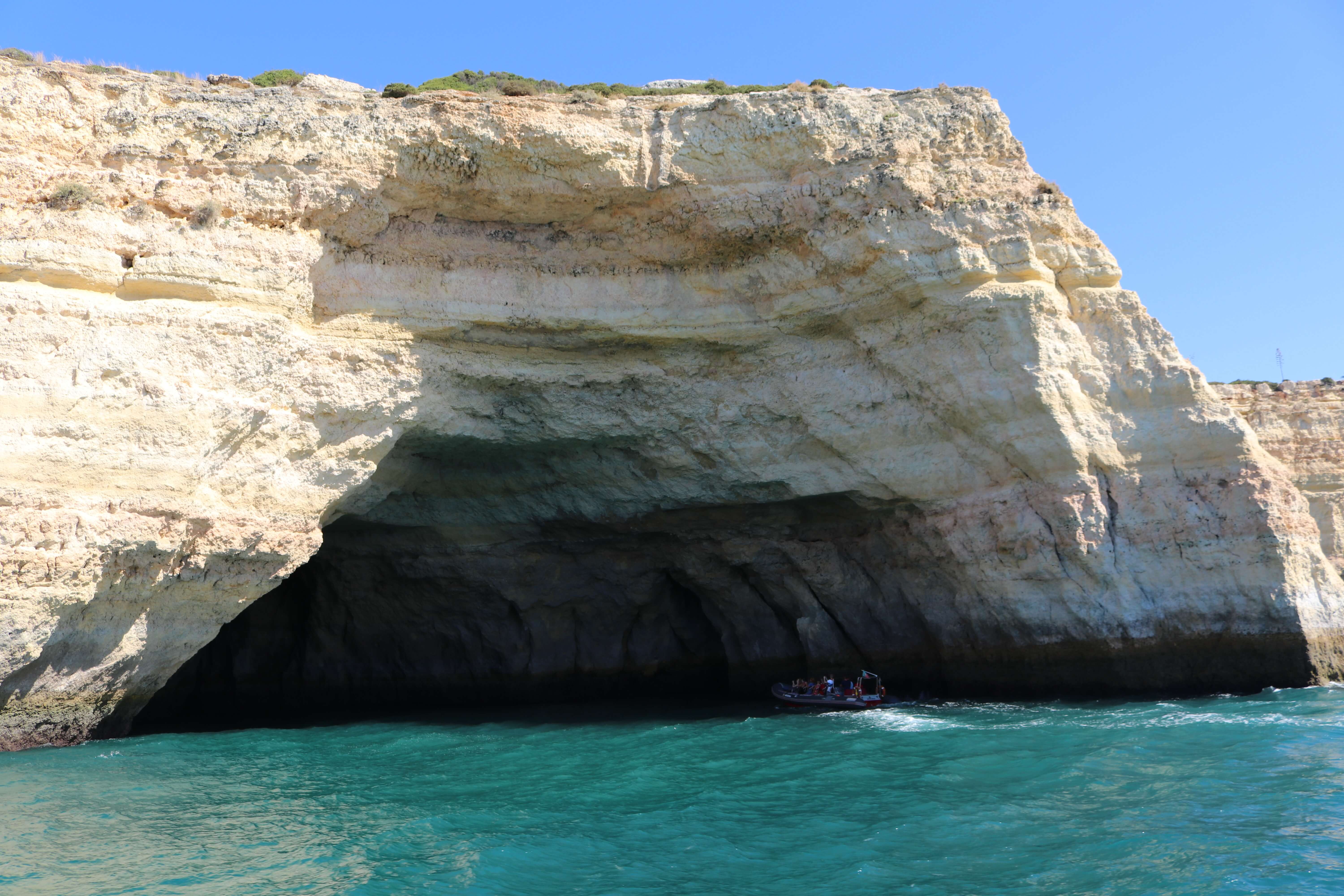 이렇게 사람들을 가득 태운 큰 배들이 몰려있는 모습이 보인다면, 베나길 동굴(Benagil Cave)에 도착했다고 보면 된다.