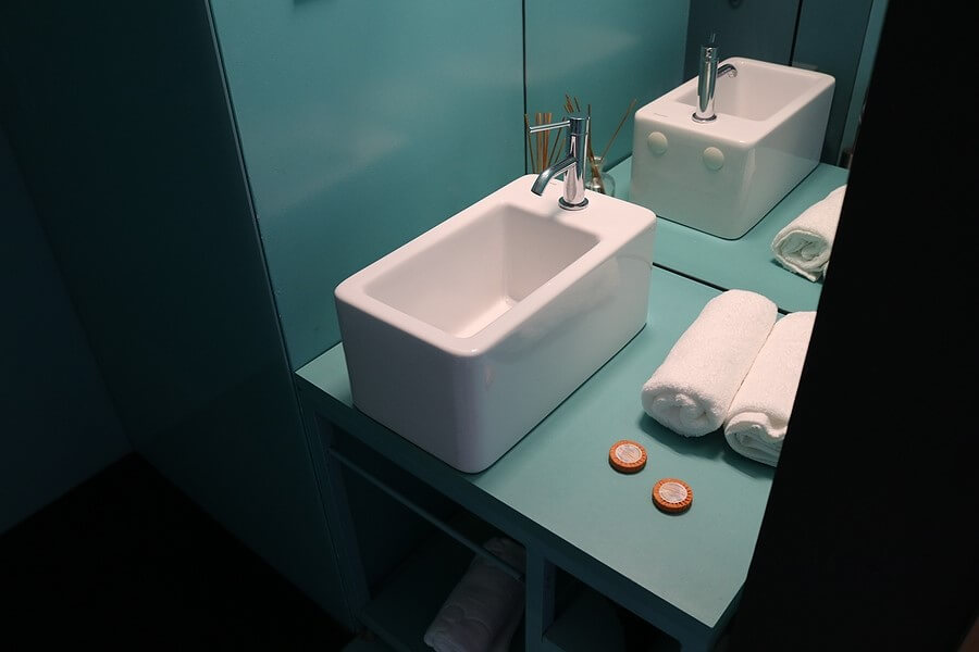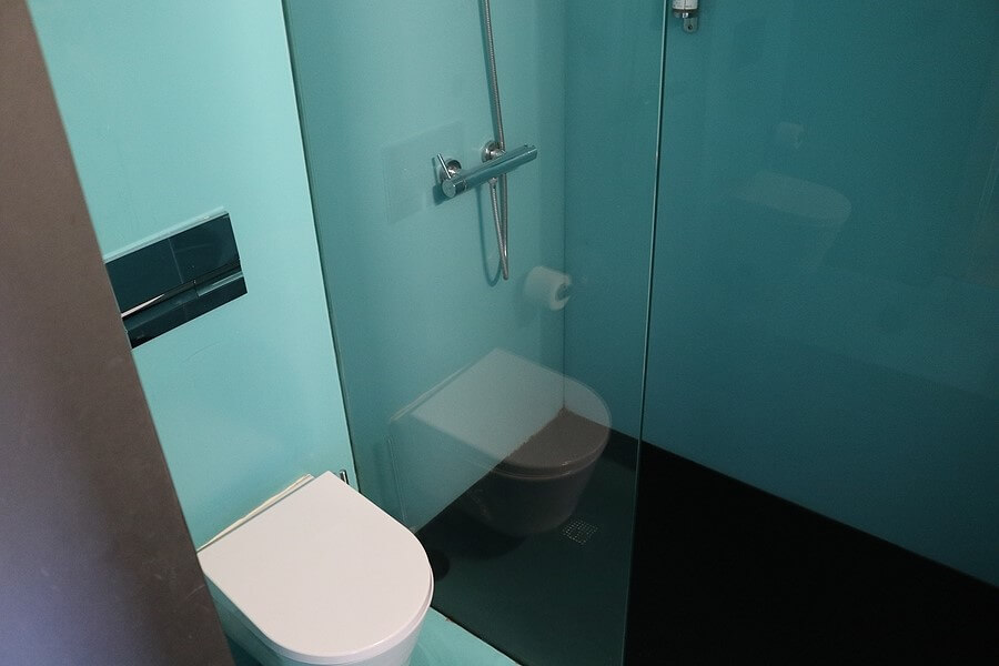 화장실은 일반적인 색채가 아닌 청록색으로 되어 있어 눈길을 끌었다. 다만 작아도 너무 작은 세면대와 샤워실 하수구 물이 잘 빠지지 않는다는 단점이 존재했다.