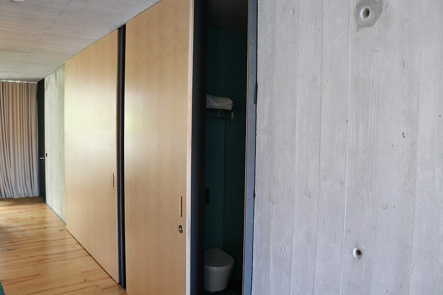 방이 일자로 곧게 뻗어있는만큼 공간을 최대한 활용하여 인테리어가 되어 있었다. 이렇게 미닫이 문을 열어 젖히면 화장실과 주방이 나오는 독특한 구조였다.
