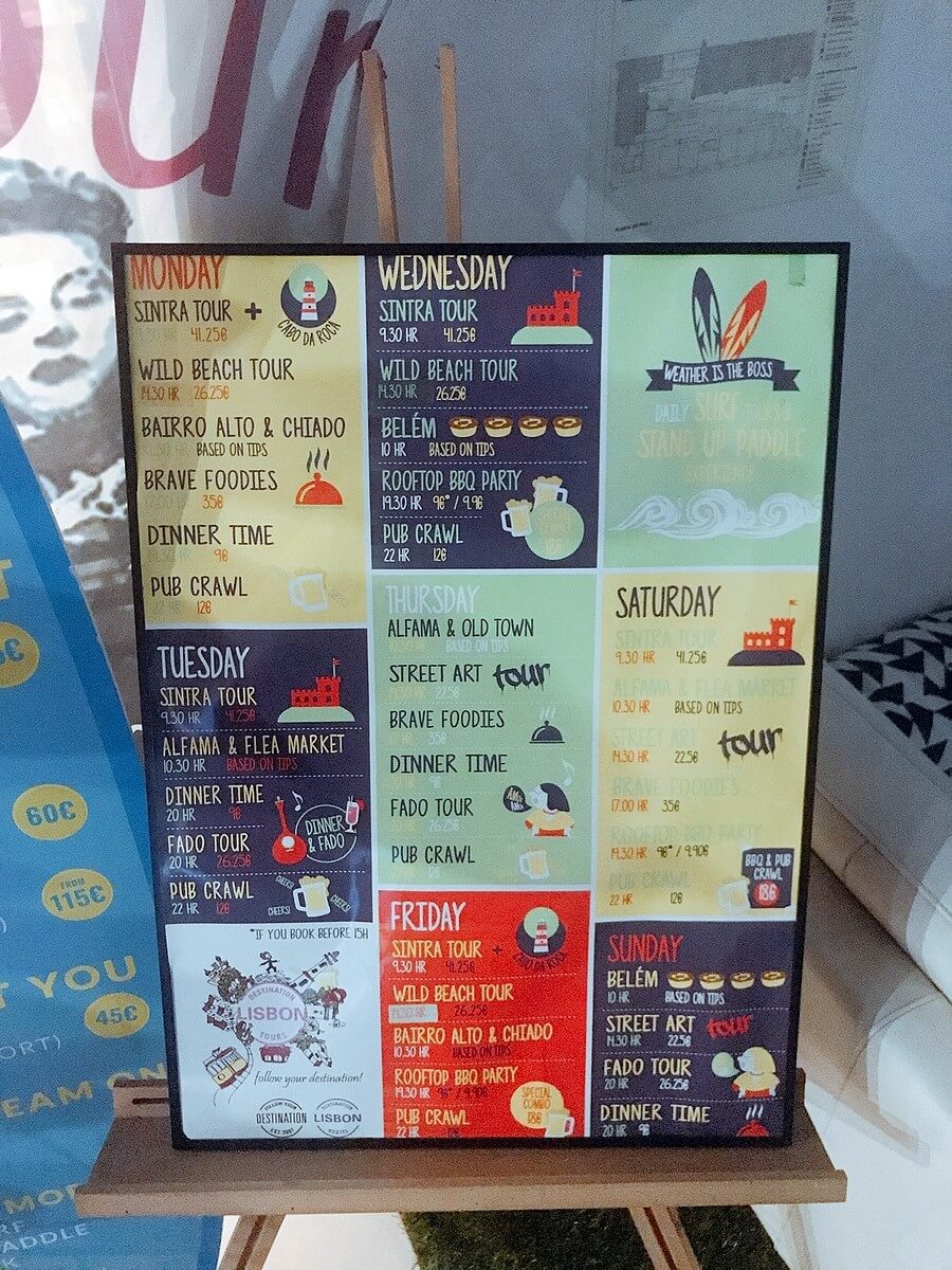 리스본 데스티네이션 호스텔에서는 이렇게 요일마다 자체 프로그램을 운영중에 있었다. 합리적인 가격에 외국인 친구들을 만들 수 있기에 참여해보아도 좋을 듯 하다.
